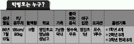 그 뒤에는 3연타석 홈런을 친 ‘고교 슬러거’ 박병호(18)가 있었다.고교야구에서 3연타석 홈런이 나온 것은 김윤환(광주일고·75년) 김종국(광주일고·91년) 장요상(전주고·99년)에 이어 네번째다.