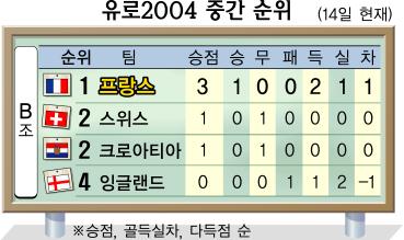 같은 조 스위스와 크로아티아는 9개의 경고와 1개의 퇴장이 춤추는 격전을 벌였으나 득점없이 비겼다.