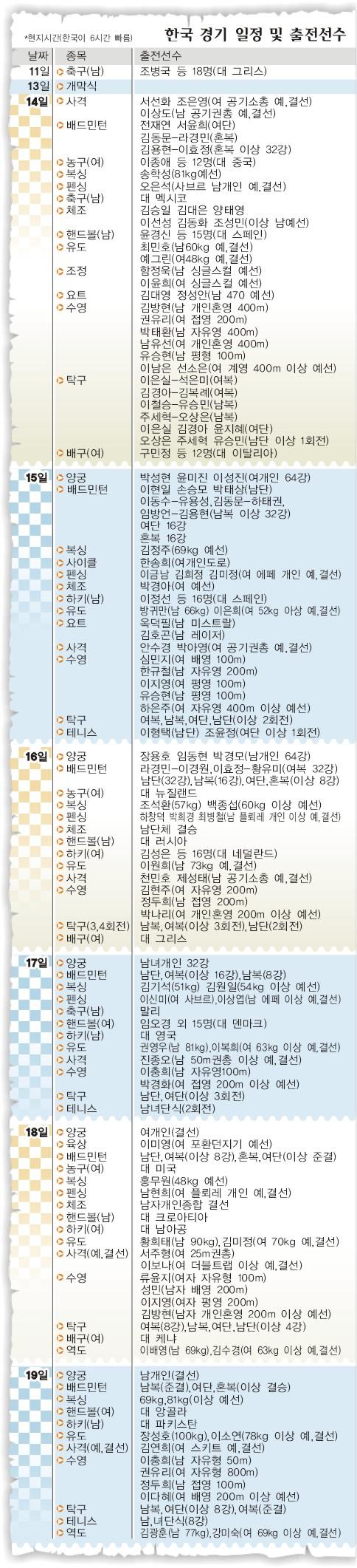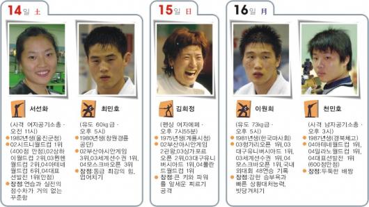 한국 여자레슬링의 ‘선구자’ 이나래(25·평창군청),여자체조의 ‘자존심’ 박경아(18·강원체고),싱크로나이즈드 스위밍의 ‘희망’ 유나미(26·전남체육회) 김성은(20·이화여대) 듀오.