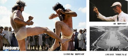 디스커버리 채널에서도 5편의 특집 다큐멘터리를 마련했다.세계에서 가장 유명한 경주의 뒷이야기를 전해주는 ‘마라톤의 기원’이 8월2일 밤 12시에 방영되며 ‘시골 올림픽’이 4일 같은 시간대 시청자들을 찾아간다.‘시골 올림픽’은 올림픽 정신을 살려 매년 2월 펀자브지역에서 개최되는 인도의 연례 스포츠축제를 소개한 것이다.9일(밤 12시) ‘로마의 동물전사’에서는 로마시대 최대 비즈니스 중 하나였던 동물격투산업을 조명한다.30일 오후 11시부터 31일 새벽 1시까지 1부와 2부에 걸쳐 방송되는 ‘올림픽의 세계,리얼 올림픽’에서는 고대 올림픽 전차 경주에서부터 격투에 이르기까지 모든 경기를 시청자의 눈앞에 재연해 낸다.