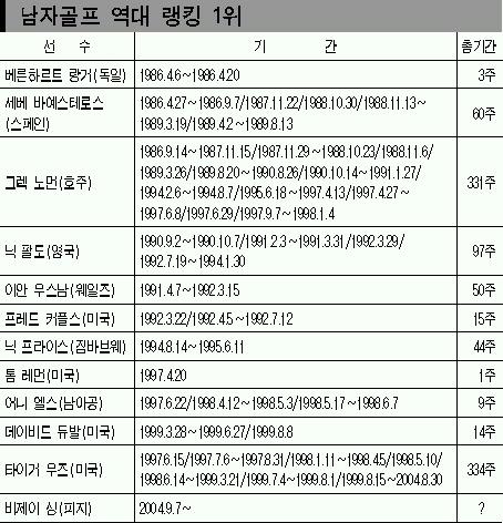 “많은 사람들이 41살의 나이에도 어쩌면 그렇게 골프를 잘 치냐고 묻는다.그러나 중요한 것은 나이가 아니라 훈련이다.나는 더 열심히 훈련할 자신이 있으므로 내년에도 정상에 서 있을 것이다.” 새로운 ‘황제’의 통치가 얼마나 지속될지 두고 볼 일이다.