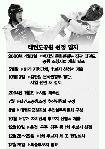 한편 대한태권도협회 관계자는 “자치단체간의 과열경쟁으로 태권도계가 오히려 공원 선정과정에서 전혀 목소리를 내지 못하고 있다.”고 불만을 터트렸다.