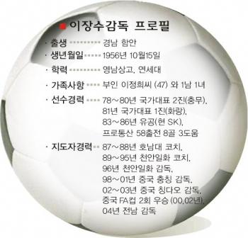 지난 78∼81년 국가대표로 활약했던 이 감독은 프로축구 유공(현 부천)을 거친 뒤 지도자로 변신했다.93∼95년에는 천안(현 성남) 코치로 박종환 현 대구 감독을 도와 K-리그 사상 첫 3연패를 일구기도 했다.