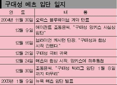 뉴욕 양키스 입단이 확실시되던 구대성이 뉴욕 메츠로 급선회한 것은 양키스 내부의 파워 게임과 메이저리그 자리 보장 때문인 것으로 알려졌다.
