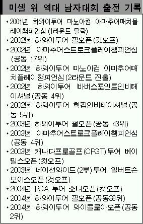 그러나 2003년과 2004년 잇따라 연장전 끝에 우승컵을 안았던 엘스와 세계랭킹 1위 싱, 지난해 US오픈 챔피언 레티프 구센(남아공), 스튜어트 싱크(미국) 등 스타 선수들이 줄줄이 출전해 ‘미셸의 기적’이 쉽지만은 않을 전망이다.