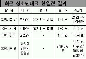 이제 마지막 상대는 역시 노르웨이를 2-0으로 물리치고 결승에 오른 ‘영원한 맞수’ 일본. 스무살 동갑내기 박주영과 히라야마 소타(쓰쿠바대)의 골대결이 특히 관심이다.