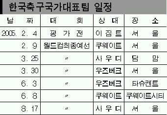 1월 한 달 미국 전지훈련과 평가전을 통해 막바지 전력 점검을 마친 축구대표팀이 2006독일월드컵 아시아 최종예선전에 돌입하는 것.