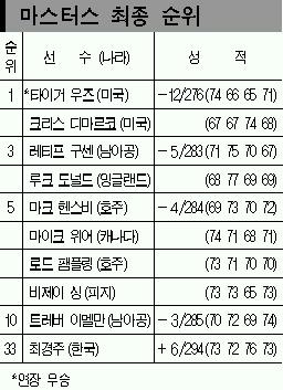 한편 2년 연속 ‘톱10’을 노리던 최경주(나이키골프)는 버디 4개를 잡았으나, 더블보기 1개와 보기 3개를 저지르며 최종 6오버파 294타 공동 33위에 그쳤다.
