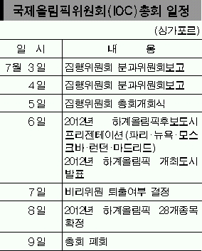 ‘국기’인 태권도의 사활 여부가 오는 8일 결정된다.5일 싱가포르에서 개막하는 국제올림픽위원회(IOC) 117차 총회에서 2012년 하계올림픽 종목이 찬반 비밀 투표로 확정되기 때문이다. 현행 28개 종목별 퇴출 여부는 오는 8일 총 116명의 IOC위원 가운데 출석위원의 과반수 이상 찬성으로 가려진다.