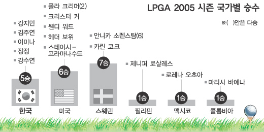 한국은 강지민(25·CJ)과 김주연(24·KTF) 이미나(24) 장정에 이어 강수연까지 ‘마수걸이승’으로만 시즌 5승을 합작하는 진기록을 세우며 스웨덴(7승), 미국(6승)과 다승행진을 펼치게 됐다.