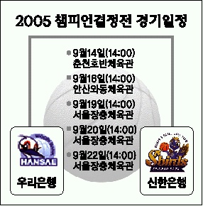 14일부터 열리는 2005여자프로농구 여름리그 챔피언결정전(5판3선승제)을 앞두고 우리은행과 신한은행의 신경전이 뜨겁다. 지난 겨울리그라면 상상도 못할 장면. 당시 챔프에 오른 우리은행은 꼴찌에 머문 신한은행을 상대로 4전전승을 거뒀다.