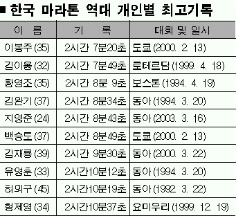 스포츠 평론가 기영노(51)씨는 “장기적인 안목으로 체계적인 훈련 시스템을 갖춘 일본은 여자 마라톤에서 이미 올림픽을 2연패하는 등 세계 수준에 올랐고 남자도 내년 도하아시안게임부터 한국을 앞지를 것”이라고 내다봤다.