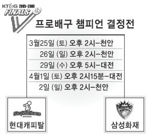 ‘40년 우정’이 또 외나무다리에서 만났다. 올시즌 프로배구 최정상을 향한 마지막 길목. 오는 25일부터 천안-대전을 오가며 5전3승제로 펼쳐지는 현대캐피탈-삼성화재의 챔피언결정전이다. 프로 원년인 지난해 정규리그 우승을 일궈낸 김호철(현대) 감독, 그리고 2위로 웅크리다 챔프전에서 우승컵을 움켜쥔 신치용 감독(삼성). 올해도 지난해의 ‘재탕’이 될까, 아니면 현대가 막판에 빼앗긴 우승컵을 되돌려 받을 수 있을까. 결과는 아무도 점칠 수 없다. 쉽게 속단하기엔 빼놓을 수 없는 ‘+α’가 너무 많기 때문이다.