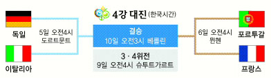 남미의 우승후보들이 중도 탈락함으로써 독일월드컵은 1982년 스페인대회 이후 무려 24년 만에 유럽팀끼리 준결승전에서 한판 승부를 벌이게 됐다.