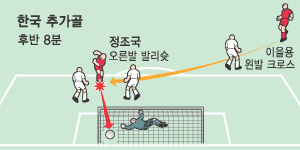 정조국은 올해 1월 아랍에미리트연합(UAE)과의 평가전을 통해 A매치 무대를 처음 밟은 이후 5경기 만에 골맛을 보는 기쁨을 누렸다. 쐐기골은 캐넌 슈터 김두현의 몫이었다. 후반 35분, 안정환과 교체투입된 지 10분 만에 통쾌한 중거리슛을 터뜨리며 베어벡 감독 데뷔전 승리의 대미를 장식했다.