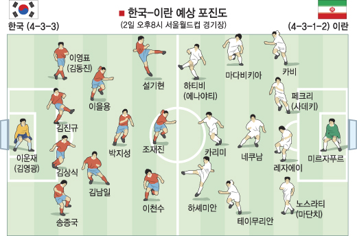 2일 경기에서도 이란의 측면 돌파에 이은 크로스나 프리킥을 철저히 막아내야 하는 것이 과제다.