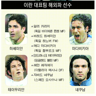 2일 서울월드컵경기장에서 열리는 아시안컵 예선 B조 3차전을 앞둔 한국과 이란은 해외파를 총집합시켰다. 한국이 7명, 이란은 6명이다. 또 독일월드컵 출전 멤버 대부분을 내세울 예정이다. 그만큼 두 팀은 이번 경기를 본선 진출의 분수령으로 여기고 있다.