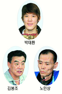 둘은 지난 1일 오후 4시30분쯤 태릉선수촌 수영장 코치실에서 박태환의 촌외 개인훈련을 놓고 노 감독이 제기했던 ‘3자 개입설’ 때문에 논쟁을 벌인 것으로 알려졌다. 우회적으로 자신을 지목한 노 감독의 발언에 대한 김 위원장의 항의성 방문이었던 셈.