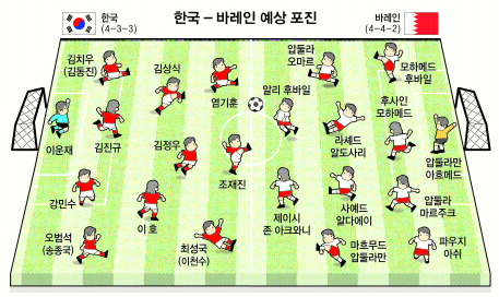 물론 이동국(미들즈브러)과 이천수(울산)의 선발 출장도 예상할 수 있지만 높이에서 우위를 보이고 있는 조재진과 행동 반경이 넓은 최성국을 선발로 투입, 바레인의 체력을 바닥낸 뒤 시차를 두고 둘을 해결사로 투입하는 전술에 더 무게가 실린다.