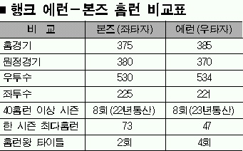 사상 최초로 7차례나 리그 최우수선수(MVP)를 차지한 데다 한 시즌 최다 홈런(73개)을 기록하고, 통산 홈런 신기록까지 눈앞에 둔 본즈는 2000년부터 5년간 40개 이상을 친 뒤 2005년 5개, 지난해 26개로 홈런수가 뚝 떨어졌다.