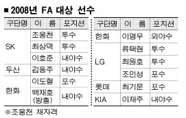 거포 김동주(31·두산)와 포수 조인성(32·LG)이 일찍 대박을 예고했고, 포스트시즌에서 맹활약하며 팀을 한국시리즈 우승으로 이끈 이호준(31·SK)도 기대를 감추지 못한다.
