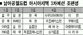 이번 조추첨에서 지옥의 조는 올해 아시아에 처음 편입된 호주와 카타르,이라크,중국이 모인 1조와 이란,시리아,쿠웨이트,아랍에미리트 등 중동세로만 짜인 5조가 꼽힌다.태국과 함께 2조에 속하게 된 일본은 오만,바레인 등 마찰라 감독이 거쳤거나 현재 지휘봉을 잡고 있는 팀들과 함께 최종예선행을 다투는 가시밭길을 걷게 됐다.