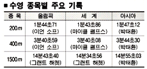 문제는 자유형 1500m다. 모두가 바라고 있는 올림픽 수영 2관왕을 달성하기 위해선 반드시 넘어야 할 산이지만 가능성은 자유형 400m만큼 크지 않다는 게 일반적인 전망. 아직 최강자들과의 대결에서 우승해 본 적이 없는 데다 지구력이 최상의 상태로 가다듬어지지 않았기 때문이다.