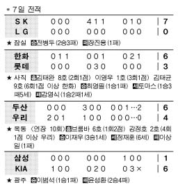전병두는 7일 잠실에서 열린 프로야구 LG와의 경기에 선발 등판,5이닝 무실점으로 막고 팀의 7-0 완승을 이끌었다.2연승한 SK는 2위 롯데와 6.5경기차로 선두 독주 체제를 갖췄다. 반면 LG는 6연패로 꼴찌 KIA에 1경기차로 쫓기게 됐다.