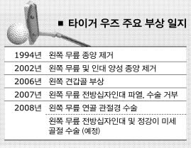 고질적으로 우즈를 괴롭히고 있는 무릎 수술은 이번이 네 번째. 강한 임팩트시 체중이 왼쪽 무릎으로 빠르게 옮겨지면서 생긴 것으로 알려졌다.2002년 수술 뒤 우즈는 무릎 보호를 의식해 스윙을 약간 수정하기도 했다. 전방 십자인대와 스트레스성 미세 골절에 대한 이번 수술은 마스터스 직후 받은 것에 견줘 훨씬 규모가 커질 전망. 그러나 무릎 수술 전문가인 로널드 그렐세이머 박사는 이날 ‘스포츠일러스트레이티드’와의 인터뷰에서 “이런 수술은 보통 회복 시간이 길지만 선수 생명에 지장을 주지는 않는다.”면서 “우즈는 내년이면 다시 골프 코스에 설 수 있을 것”이라고 말했다. 그러나 우즈가 다음 시즌 복귀, 정상기량을 회복할지는 미지수란 지적이 많다.