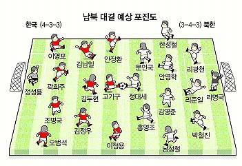 김두현이 처진 스트라이커로 내려가면서 김남일(빗셀 고베)-김정우(성남) 더블 볼란테와 함께 상대 공격의 핵인 정대세(가와사키)와 홍영조(베오그라드)를 묶는 데도 유리하다. 문제는 ‘창끝’이 다소 무뎌질 수 있는 점.