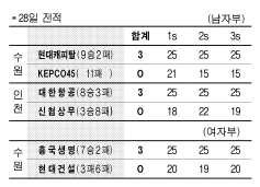 현대는 역시 높이를 앞세운 블로킹이 돋보였다.하경민(8점)이 4개를 기록하는 등 모두 12개의 블로킹을 성공시켜 상대 공격수를 주눅들게 했다.블로킹 3개에 그친 KEPCO45는 ‘장대군단’ 현대를 막기엔 한뼘 모자랐다.