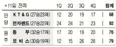 11일 안양체육관에서 열린 프로농구 KT&G-전자랜드전. 0.5경기차 살얼음판 플레이오프 경쟁을 펼치고 있는 두 팀 모두 1승에 대한 갈증으로 목젖이 타들어 갔다. 객관적인 전력은 전자랜드가 한 수 위. KT&G의 해결사 마퀸 챈들러가 부상으로 빠졌기 때문. 팀의 궂은일을 도맡아 하던 양희정이 어깨를 다쳐 시즌 아웃된 뒤 투지로 버텨온 KT&G로선 치명타였다.