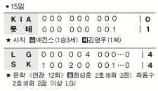 문학에서는 SK와 LG가 연장 12회 혈투를 벌였으나 4-4로 승부를 가리지 못했다.