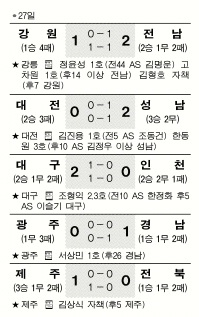 성남은 후반 7분 김정우의 패스를 받은 한동원이 페널티 지역 정면에서 오른발 슈팅으로 대전 골네트를 흔들어 2-0으로 이겼다.