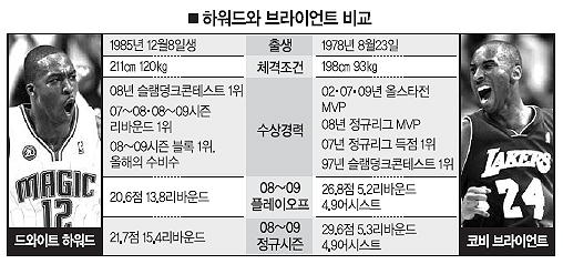 슈팅가드인 브라이언트와 센터인 하워드가 매치업을 이룰 일은 거의 없다. 하지만 가장 확실한 공격옵션인 둘의 활약에 따라 레이커스가 팀통산 15번째 우승을 할지, 올랜도가 창단 첫 우승을 할지 갈릴 것은 두 말할 나위가 없다.