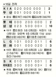 목동에서는 히어로즈가 SK를 6-3으로 꺾고 3연승을 질주했다. 개막 이후 8연승을 달린 SK 김광현은 이날 첫 패배를 기록했다. 대구에서는 삼성이 ‘기록의 사나이’ 양준혁(40)의 3경기 연속 홈런 등 대포 세 방을 앞세워 롯데를 10-2로 제압했다. 양준혁은 역대 개인통산 최다홈런 기록을 348개로 늘렸다. 잠실에서는 KIA가 아퀼리노 로페즈의 9이닝 1실점 완투에 힘입어 두산에 2-1, 짜릿한 1점차 승리를 거뒀다.