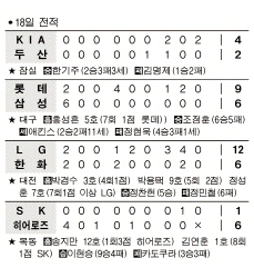 잠실에서는 KIA가 2-2 동점이던 9회초 나지완의 결승타에 힘입어 두산을 4-2로 제압했다. 8회말 등판한 마무리 한기주는 2이닝을 무실점으로 막아 시즌 2승(3패)째를 거뒀다.
