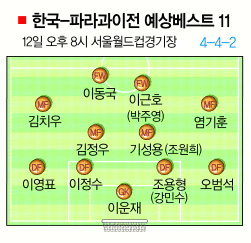 파라과이는 국제축구연맹(FIFA) 랭킹 20위로 한국(48위)보다 객관적 전력에서 앞선다. 역대 A매치 상대전적에서도 1승3무로 무패행진.