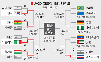 한국의 8강 상대는 아프리카의 강호 가나로 결판났다. 16강전에서 남아프리카공화국을 누르기까지 4경기에서 10점(4실점)을 뽑는 화력을 뽐낸 팀이다.셀라스 테테(55) 감독이 이끄는 가나는 7일 이집트 이스마일리아 스타디움에서 열린 국제축구연맹(FIFA) 20세 이하(U-20) 월드컵 16강전에서 연장 혈투 끝에 2-1로 승리, 9일 밤 11시30분 한국과 4강 진출을 다투게 됐다.