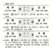 전주 ‘호남 더비’에선 전북이 ‘황태자’ 최태욱과 ‘브라질 특급’ 루이스의 릴레이 골을 앞세워 광주를 2-0으로 꺾었다. 선두(승점 53점·16승5무5패)를 굳게 지킨 전북은 남은 2경기 중 한 번만 이기면 자력으로 정규리그 우승을 매듭짓는다. 최태욱은 0-0으로 시소게임을 벌이던 후반 11분 루이스의 짧은 헤딩 패스를 받아 골 지역 정면에서 머리로 골을 뽑았다. 4경기 연속 공격포인트(3골 1도움). 전북은 5연승을 달렸다. 13경기 무승(1무12패)의 늪에 빠진 광주도 PO 꿈을 버렸다.