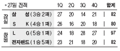 창원에선 홈팀 LG가 3쿼터에서만 18점을 쓸어담은 ‘하프코리안’ 문태영(34점)의 활약 덕에 전자랜드를 97-82로 눌렀다. 전자랜드는 4연패에 빠졌다.