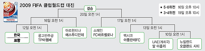 지구촌 최고의 클럽을 가리는 국제축구연맹(FIFA) 클럽월드컵 축구대회가 10일 오전 1시 아랍에미리트연합(UAE) 두바이에서 개최국 알아흘리와 뉴질랜드 오클랜드시티 경기를 시작으로 막을 올린다. 20일까지 아시아와 유럽, 남미, 아프리카, 북중미, 오세아니아 등 6개 대륙 7개 팀이 왕중왕을 놓고 겨룬다.