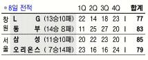 서울 잠실체육관에선 삼성이 오리온스를 85-79로 눌렀다. 이규섭(17점 3점슛 3개)이 활약했다. 삼성은 3연패에서 벗어났다. 동부는 KT, KCC와 14승8패로 공동 2위다.