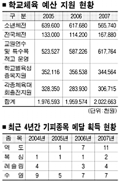 또 이들 순회코치의 사기 진작과 선진 학교체육을 벤치마킹하기 위해 올해 처음으로 지도실적이 뛰어난 학교체육 순회코치 20명을 대상으로 2000만원을 들여 국외연수도 실시할 예정이다.