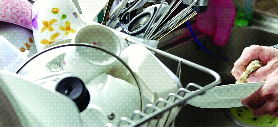 평일 저녁 맞벌이 여성을 기다리고 있는 설거지거리. 서울신문 DB